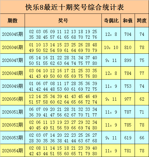 福彩兴奋8第2026054期开奖转头奖号:02 08 11 14 15 18 21 23 39 40 42 43 44 51 55 60 65 71 79 80,其中奖号奇偶比为11:9,和值为781,跨度为78。