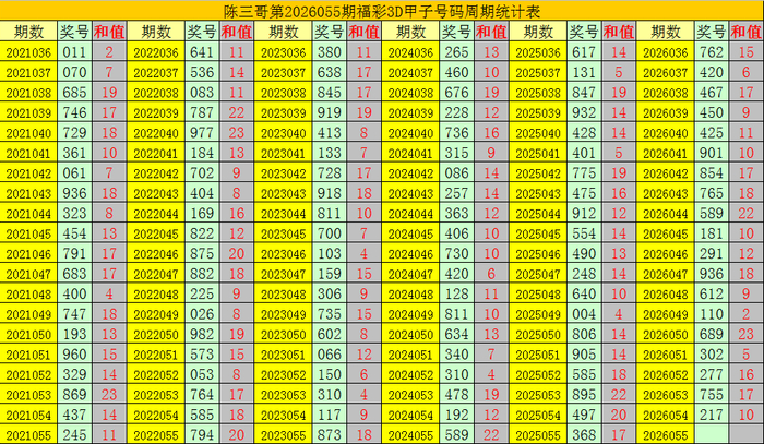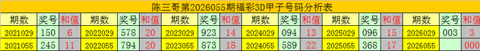 陈三哥3D第2026055期甲子号分析: